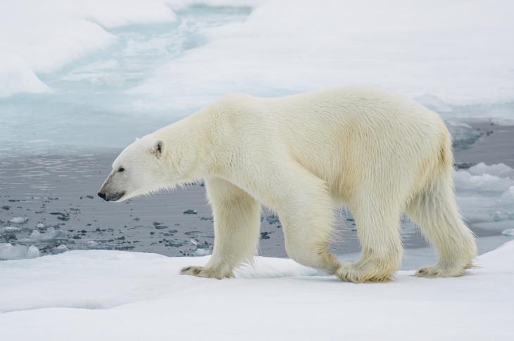 Oso polar (Ursus maritimus). Habita el Ártico y está altamente especializado en la caza de focas sobre el hielo marino. Es una de las especies más afectadas por el cambio climático.