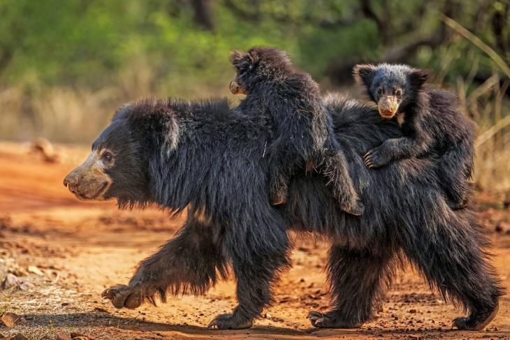 Oso perezoso (Melursus ursinus). Se distribuye principalmente en India y Sri Lanka. Se alimenta en gran medida de termitas y hormigas.