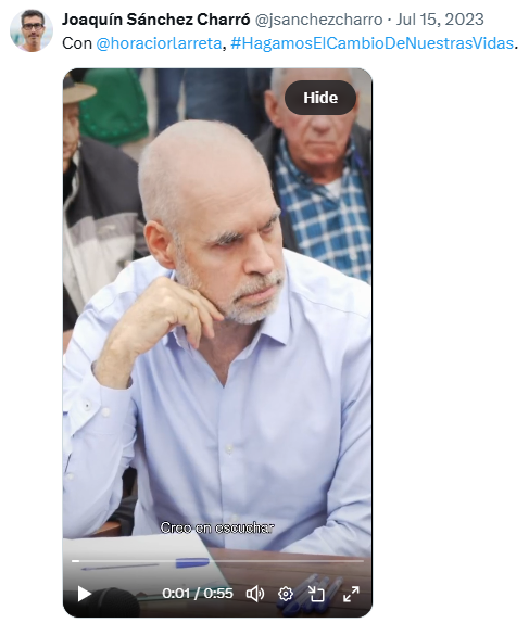 Tras la derrota de Juntos por el Cambio en 2023 y el posterior reordenamiento del sistema político, Sánchez Charró comenzó un proceso de acercamiento al nuevo oficialismo. En ese contexto, fue adoptando posiciones más cercanas al ideario libertario, aunque sin una identificación plena con el núcleo duro del espacio, de la mano de Santilli.