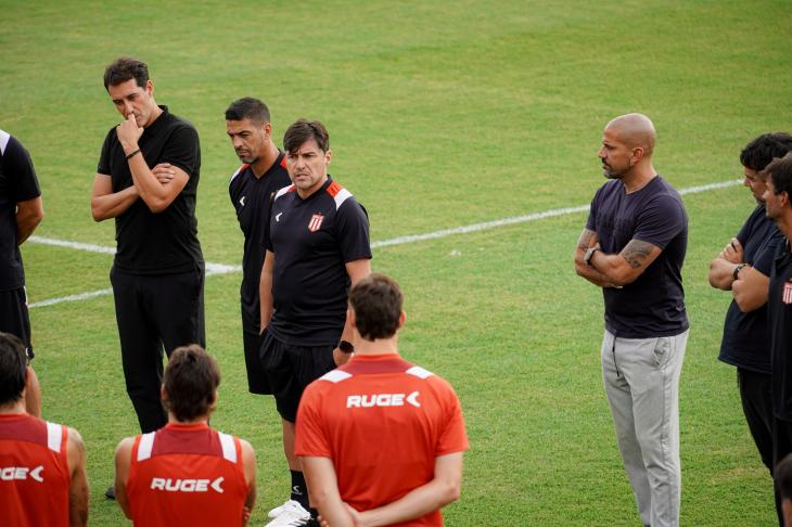 El Country Club de City Bell fue el escenario donde el entrenador uruguayo se puso al frente del plantel por primera vez, acompañado por el presidente Juan Sebastián Verón, quien ofició de anfitrión y le dio la bienvenida ante los jugadores.