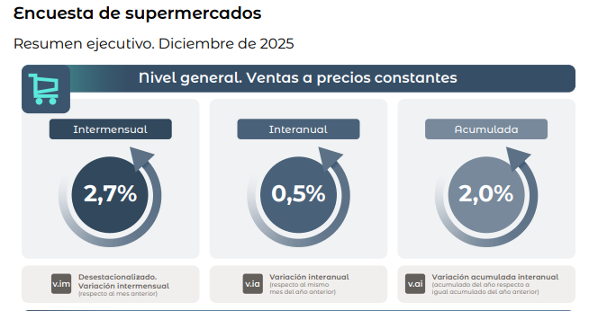 En el consumo en supermercados, se sintió cierto alivio. En diciembre, las ventas repuntaron 0,5% respecto a un año atrás, sin compensar la caída de 3,3% de dicho mes.
