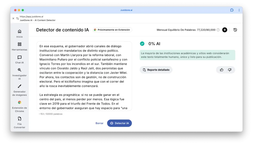 Se trata de una herramienta desarrollada en base a un modelo de machine learning, que estima la posibilidad de que un texto fuese escrito por una persona o por un generador de texto automatizado.