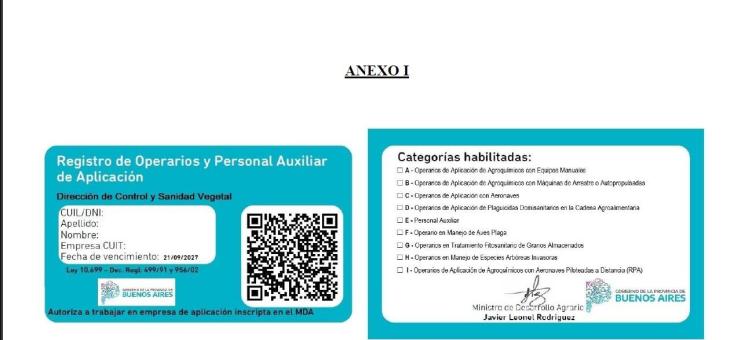 Para ello la dirección de Control y Sanidad Vegetal provincial otorgará un carnet habilitante con duración por tres años que deberá ser renovado oportunamente de acuerdo al marco regulatorio.