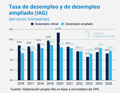 En cambio, el desempleo ampliado elaborado por el IAG en base a datos oficiales, incluye a quienes:
