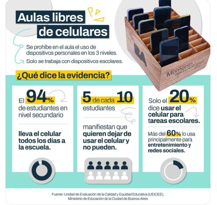 “El celular en la escuela es una máquina de distracción y no ayuda para que los chicos aprendan. Es un problema grave que tenemos y nos hacemos cargo de encontrarle una solución”, subrayó el Jefe de Gobierno, Jorge Macri. Y agregó: “El objetivo de esta en el aula es aprender y como gobierno tenemos que generar las condiciones para que los maestros vuelvan a tener la atención de los alumnos. El celular no es una herramienta imprescindible en el aula”*.