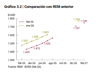 Sin embargo, cabe destacar que el relevamiento se realizó entre el 25 y el 27 de febrero, previo a la apreciación del dólar a escala global en medio de la incertidumbre desatada por el conflicto en Medio Oriente. Por ende, las estimaciones no tienen incorporado este factor.