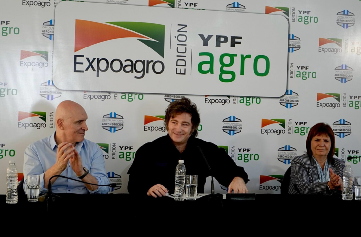 Durante su paso por la edición 2025 de Expoagro, Milei estuvo acompañado por la entonces ministra de Seguridad, Patricia Bullrich, y por el diputado nacional José Luis Espert, quien ya se perfilaba en ese momento para encabezar la lista bonaerense de LLA. Por supuesto, aun no había estallado el escándalo por su relación con Fred Machado, vinculado al narcotráfico, lo que trastocó completamente la estrategia electoral libertaria y llevó al calvo eocnomista al ostracismo político.