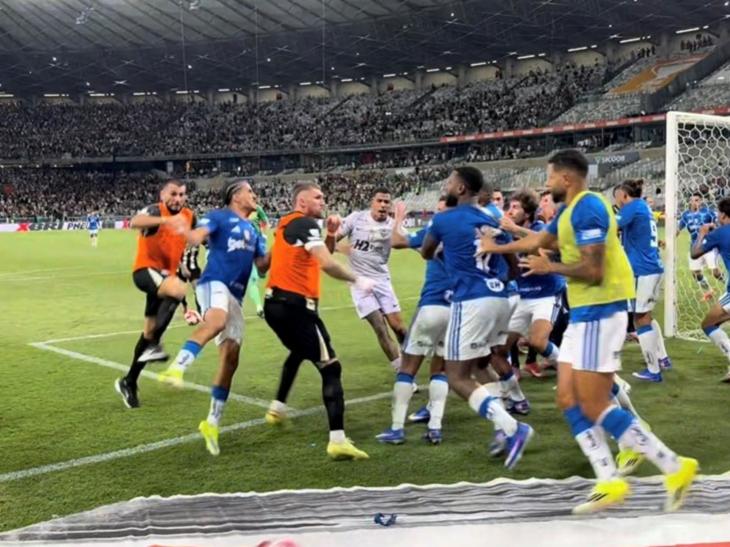 A partir de allí, la cancha se convirtió en un ring. El argentino Lucas Romero (Cruzeiro) le propinó una patada voladora a Everson, quien ya había recibido un golpe de Matheus Henrique. Jugadores del Galo, dirigido por el argentino Eduardo Domínguez, respondieron con empujones y golpes. Hulk, figura del Mineiro, fue derribado con patadas voladoras por el defensor argentino Lucas Villalba (Cruzeiro), quien replicó con puñetazos y patadas a otros atacantes rivales como Kaio Jorge.