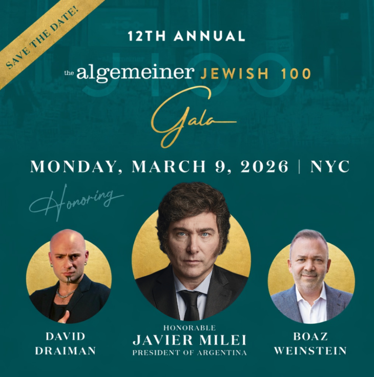 La gala anual organizada por el medio judío internacional The Algemeiner en Nueva York no solo tuvo como protagonista al presidente argentino Javier Milei. En la misma ceremonia también fueron distinguidas otras dos figuras de distintos ámbitos: el músico estadounidense David Draiman y el gestor financiero Boaz Weinstein.