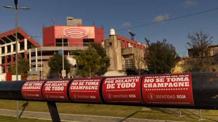 Los carteles, firmados por la agrupación opositora Identidad Roja, aparecieron en las inmediaciones del estadio y en varias zonas del centro de la ciudad con consignas como “Independiente por delante de todo” y “Con las copas del Rojo no se toma champagne”, una frase que apunta directamente contra lo que desde el espacio denominan el “grupo Champagne”, en referencia al actual oficialismo del club.