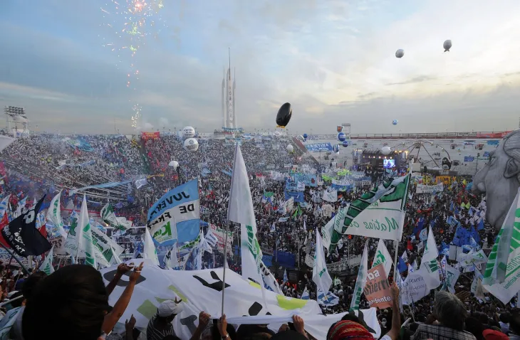 La mandataria encabezaba un homenaje por el 38º aniversario del triunfo electoral de Héctor Cámpora, hecho que permitió el regreso de Juan Domingo Perón al poder en 1973 después de una proscripción de 18 años. Sin embargo, ante una multitud en el estadio de Huracán, el discurso se había convertido en un homenaje a Néstor Kirchner, fallecido unos meses atrás.