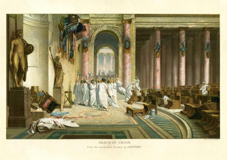 "Et tu, Brute?". La frase que Shakespeare puso en boca de Julio César —posiblemente apócrifa pero históricamente perfecta— resume la tragedia que se consumó el 15 de marzo del año 44 antes de Cristo en el Teatro de Pompeyo, donde el Senado romano celebraba aquella jornada sus sesiones. Un grupo de más de veinte senadores, autodenominados "los Libertadores" y encabezados por Marco Junio Bruto y Cayo Casio Longino, atacaron a César con estiletes ocultos bajo sus togas y le infligieron veintitrés heridas. Solo una de ellas, según el médico Antistio, fue mortal.