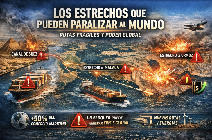 Entre los más sensibles se encuentra el Estrecho de Ormuz, por donde circula una porción decisiva del petróleo mundial. Cualquier escalada militar, sabotaje o bloqueo podría provocar subas inmediatas del precio del crudo, inflación global y tensiones diplomáticas entre potencias importadoras y exportadoras. Pero Ormuz no es el único punto crítico. El Canal de Suez, clave para la conexión entre Asia y Europa, y el Estrecho de Malaca, una de las rutas comerciales más transitadas del planeta, también concentran riesgos estructurales.