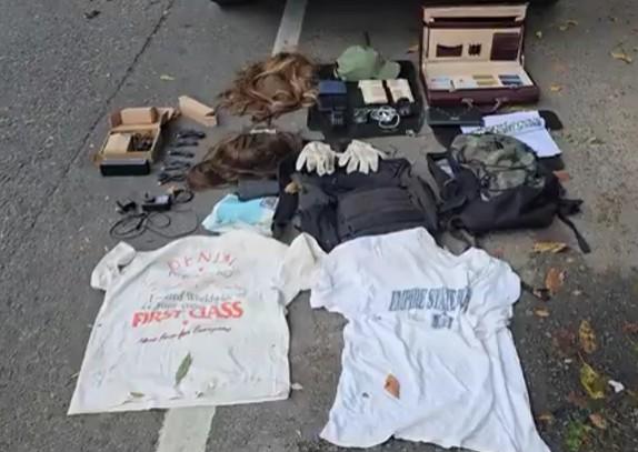 En el interior del Focus, los oficiales hallaron un inhibidor de señal, dos auriculares, dos teléfonos celulares, tres billeteras, un cargador universal para notebooks, una gorra, un par de guantes, un barbijo, dos pelucas de mujer, dos mochilas, un maletín de cuero, un rollo de papel aluminio, dos remeras mangas cortas y bolsas de consorcio.