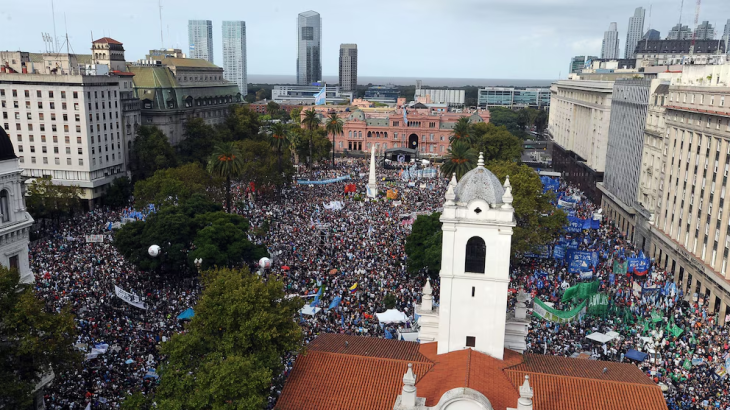 A 40 años del golpe de Estado de 1976, la Plaza de Mayo volvió a ser epicentro de una masiva movilización, pero con un mensaje que combinó la reivindicación histórica de los organismos de derechos humanos con duras críticas al rumbo político, económico e institucional del gobierno iniciado en diciembre de 2015.