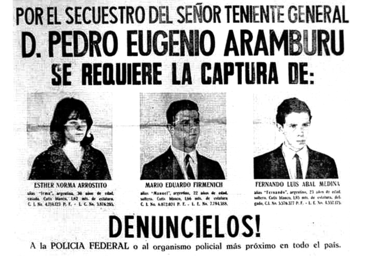 Pocos meses después de la muerte de Aramburu, Firmenich accedió a la conducción de Montoneros, por las muertes de Fernando Abal Medina, Ignacio Ramus y José Sabino Navarro, producidas en enfrentamientos con las fuerzas del orden. La organización siguió operando hasta el final de la Revolución Argentina y en democracia (1973-1976) pasó a la clandestinidad por desacuerdos con el gobierno de Isabel Perón, lo que no le impidió a "Pepe" y a "la Gaby" -Norma Arrostito- contar con lujo de detalles en la revista Causa Peronista, como murió Aramburu.