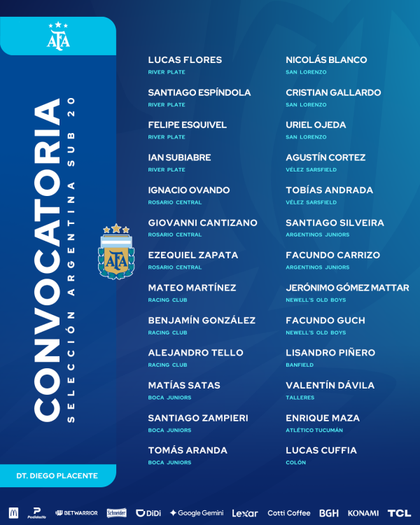 El entrenador convocó a 26 jugadores para esta primera concentración, conformando un grupo que combina talento joven y proyección futura. La idea es trabajar en aspectos físicos, técnicos y tácticos, consolidando la identidad de juego que caracteriza a las selecciones juveniles argentinas.