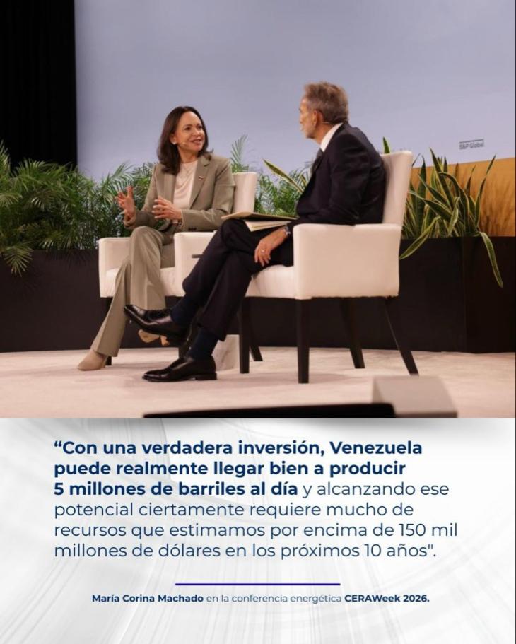 🇻🇪🇺🇸 | María Corina Machado (@MariaCorinaYA) en #CERAWeek, la conferencia energética más importante del mundo. pic.twitter.com/xLr7YTgEdd