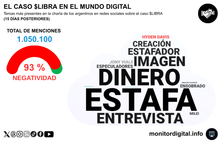 Según el relevamiento de Monitor Digital, el caso $LIBRA se consolidó como el episodio de mayor impacto digital del oficialismo.
