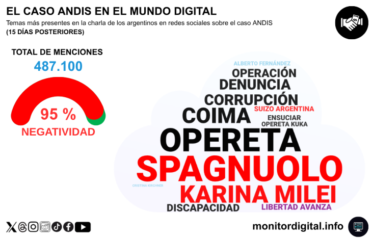 El caso vinculado a la Agencia Nacional de Discapacidad registró menos menciones que $LIBRA, pero alcanzó el nivel más alto de negatividad.