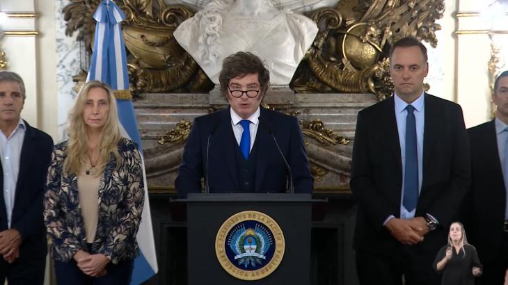 En un mensaje grabado desde el Salón Blanco de la Casa Rosada, el presidente Javier Milei utilizó una figura literaria para describir la situación que enfrentaban las cuentas públicas: la "espada de Damocles". Según el mandatario, esta amenaza financiera era el resultado de decisiones tomadas por administraciones anteriores que pusieron en riesgo la estabilidad del país.