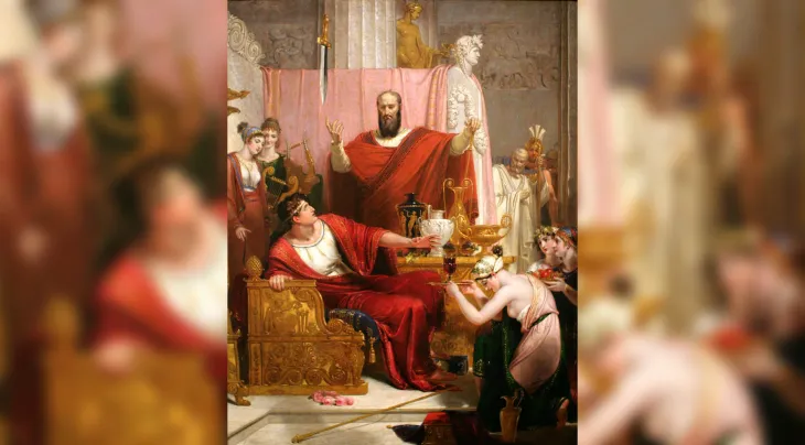 La metáfora tiene su origen en una leyenda de la Antigua Grecia. Según el relato, Damocles era un cortesano que adulaba constantemente al rey Dionisio II por su poder y lujos. Para darle una lección, el monarca le permitió ocupar el trono por un día, pero ordenó colgar sobre su cabeza una espada desenvainada sujeta únicamente por un pelo de cola de caballo.