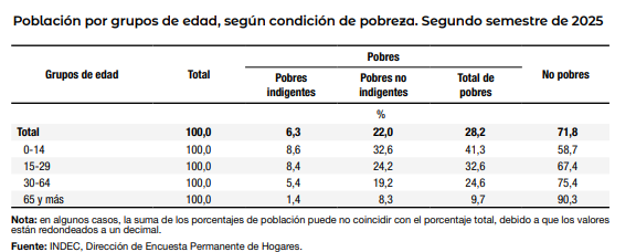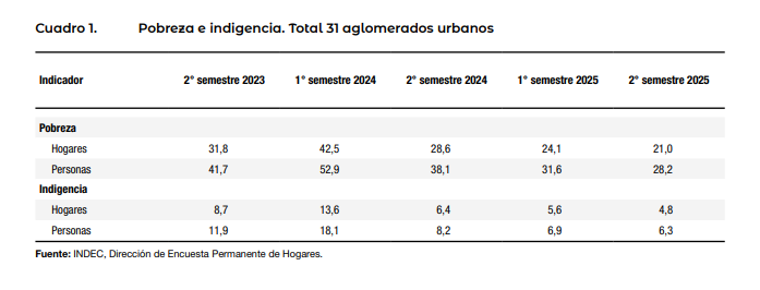 ✅En el segundo semestre de 2025 la pobreza se ubicó en 28,2%, en tanto la indigencia fue de 6,3%