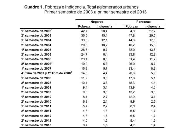 En abril de 2014, el INDEC anunció que dejaría de difundir los índices de pobreza e indigencia, argumentando “severas carencias metodológicas”.
