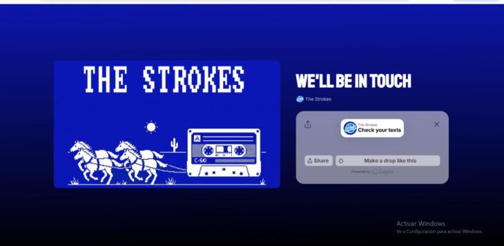 Al clickear en ese enlace los deriva a una caja de texto donde podían dejar su número de teléfono, acompañada de una ilustración vintage de cuatro caballos arrastrando un casete. Cuando completás el formulario recibís un SMS que dice "Nos alegra que estés aquí", y además confirman que van a "compartir algo muy pronto".