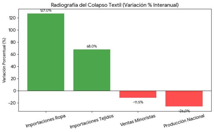 Pero el dato que quema es otro: las importaciones de prendas terminadas subieron un 127%. El precio que pagas en el mostrador es un espejismo; más de la mitad son impuestos y costos ajenos a la tela: el 21% de IVA y el 1,2% del Impuesto al Cheque son solo el principio del peaje.
