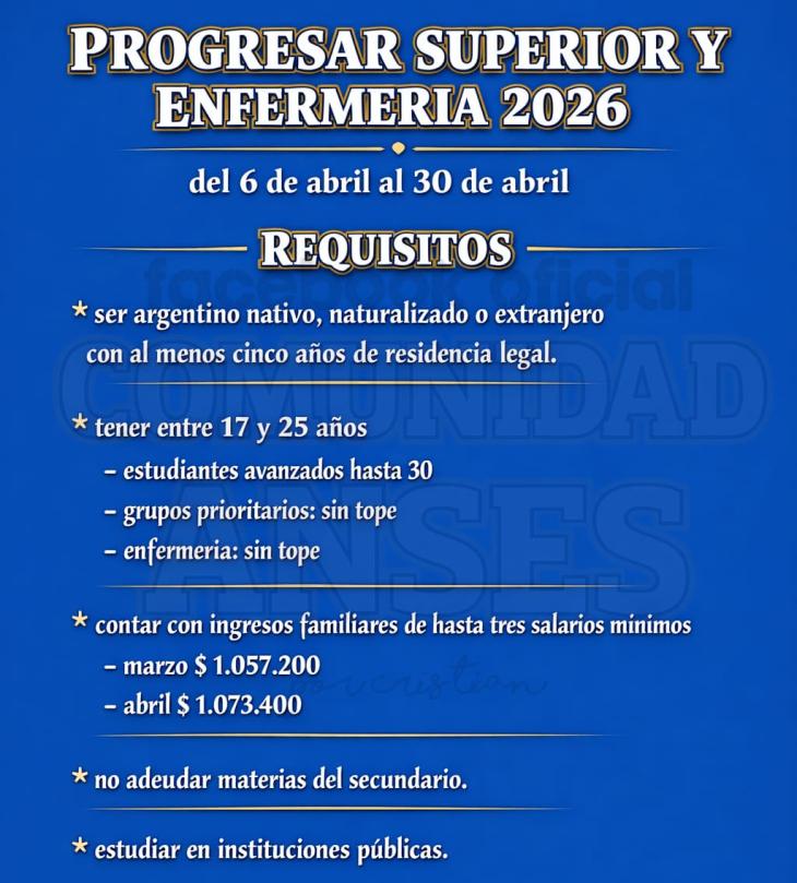 Los requisitos para acceder al Progresar Superior o Enfermería son: