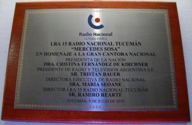 Tras su muerte en 2009, su figura adquirió un carácter aún más transversal. Un año más tarde, en 2010, se decidió que la emisora estatal pasara a llamarse Radio Nacional Tucumán Mercedes Sosa, en un gesto que buscaba inscribir su legado dentro del sistema público de medios.