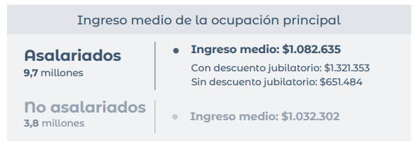 A su vez, los 3,8 millones de no asalariados alcanzaron un ingreso promedio de $1 millón.