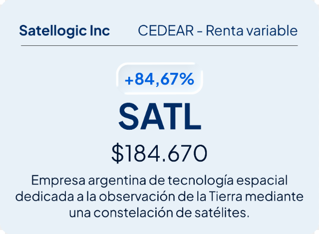 1. El CEDEAR de Satellogic Inc, una empresa argentina de tecnología espacial, mostró un rendimiento del 84,67% mensual. A fin de marzo, la tenencia habría ascendido a $184.670.