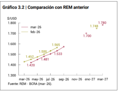 Recién hacia mitad de año se proyecta un tipo de cambio por encima de los $1.500, mientras que para fin de 2026 podría ubicarse cerca de los $1.700, todavía dentro de la banda oficial.