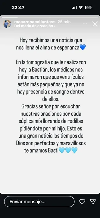 En el ámbito judicial, la causa continúa con tres imputados por el delito de lesiones culposas agravadas, entre ellos el conductor de la camioneta y el padre del niño. Mientras la investigación avanza para determinar responsabilidades, la familia de Bastián mantiene los pedidos de oración por su total y pronta recuperación.