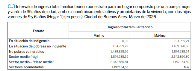Para ser clase media, en cambio, es preciso generar ingresos por más de $2.342.860,80.