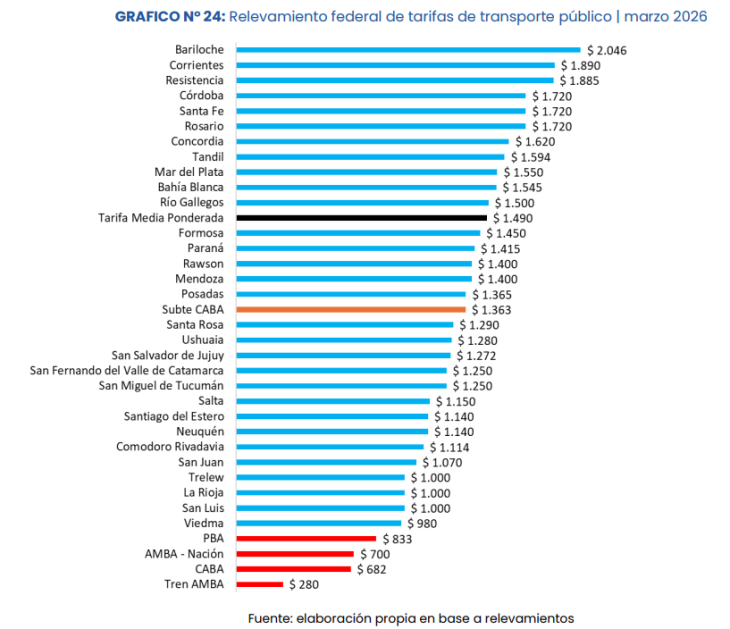 La diferencia se explica, en gran parte, por la eliminación del Fondo de Compensación al Transporte en el interior desde febrero de 2024, lo que provocó un fuerte salto en las tarifas fuera del área metropolitana.