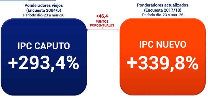 Es decir, con la metodología más reciente, la inflación acumulada sería 11,8% más alta.