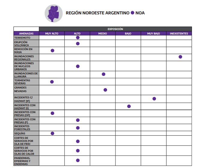Uno de los puntos centrales del anexo es el diagnóstico federal, que identifica amenazas específicas según región: