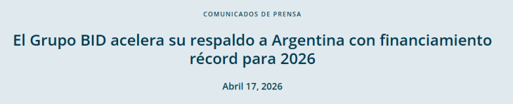 Nuevo respaldo a Argentina, esta vez por parte del BID.