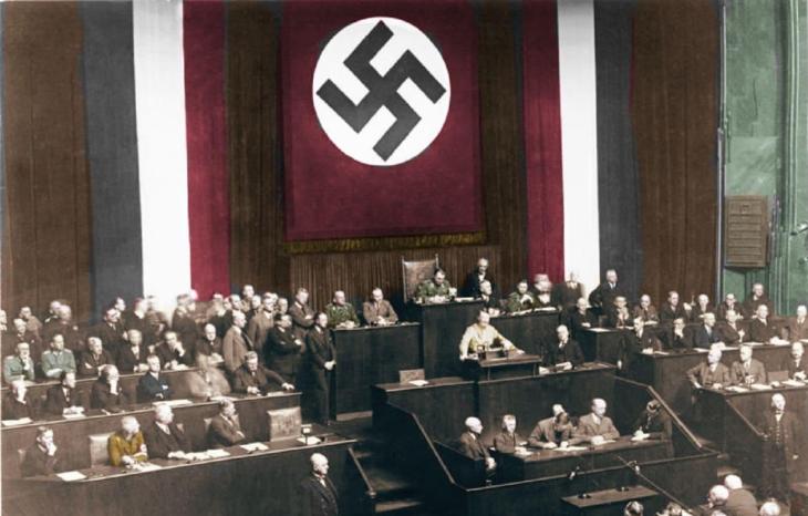 En 1933 fue nombrado canciller y, en pocos meses, desmanteló las instituciones democráticas para instaurar un régimen totalitario. A través de leyes represivas, censura y persecución política, el nazismo consolidó un sistema basado en el control absoluto del Estado y la sociedad.