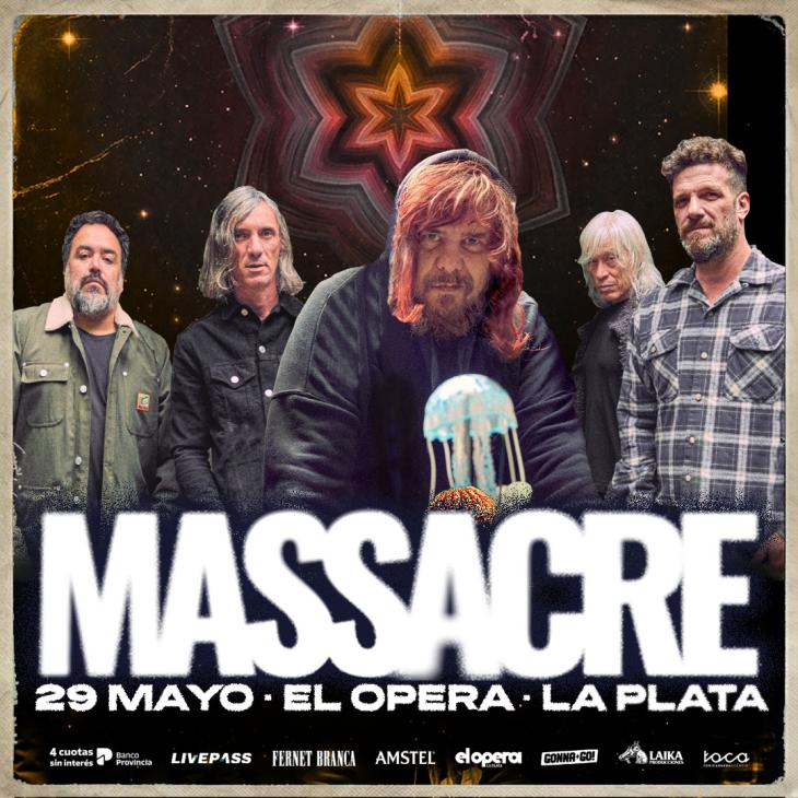 Massacre anuncia una nueva fecha en el Teatro Ópera La Plata, el viernes 29 de mayo, en el marco de su nueva gira nacional que los llevará por distintos puntos del país transitando un año que tendrá a la banda liderada por Walas decidídamente activos y tocando en vivo la mayor cantidad de veces que puedan. Las entradas están a la venta en Livepass y boletería del teatro.