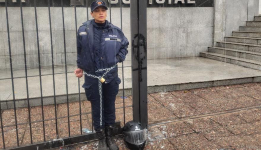 La curiosa escena en la puerta de los Tribunales de San Luis llamó la atención de todos: una mujer policía encadenada, con un reclamo concreto y urgente. Luciana Sánchez, integrante del DRIM, decidió exponerse para exigir la liberación de su esposo, el agente Matías Raúl Escudero, detenido en una causa que investiga una presunta agresión.