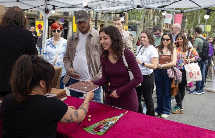 El rasgo más distintivo de la jornada es su dimensión pública. Barcelona se paraliza para celebrar: avenidas principales se llenan de stands de editoriales, librerías y floristas, mientras autores reconocidos participan de firmas de ejemplares y encuentros con lectores.