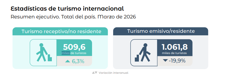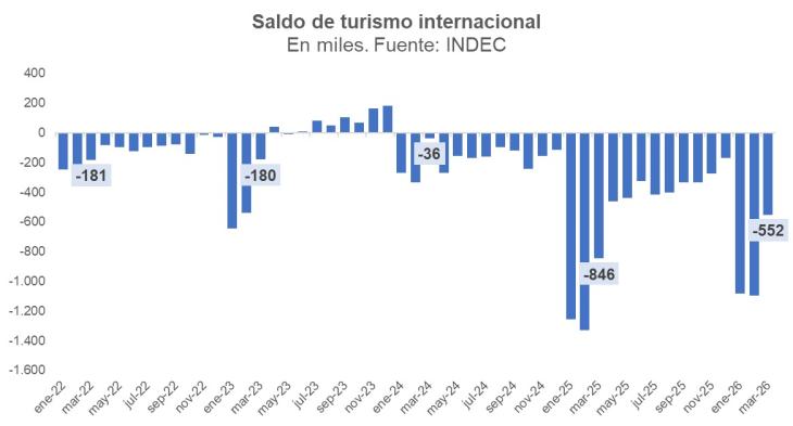 Con estos datos, en marzo, salieron 552 mil más turistas de los que ingresaron, un saldo negativo, pero algo mejor que en el mismo mes del año pasado, cuando el saldo en rojo fue de 846 mil.