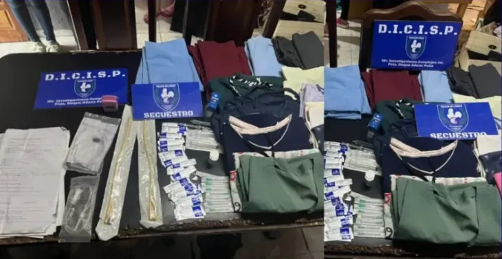En este marco, personal de la División Investigaciones Complejas realizó un allanamiento en una vivienda del barrio San Cayetano, en la ciudad de Sáenz Peña. En el lugar, los efectivos secuestraron una gran cantidad de insumos médicos como bisturíes, sondas, jeringas y uniformes sanitarios.