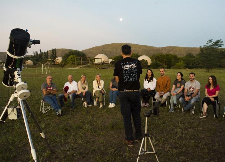 Recordando sus inicios en el astroturismo, contó: “Arranqué con una experiencia llamada Astrotravesía. Llevaba a la gente en una 4x4 por la sierra de noche”. Y describió: “Parábamos, armaba el telescopio, cafecito, alfajor, y empezábamos a mirar el cielo”.