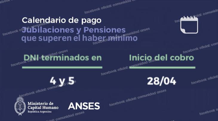 a Administración Nacional de la Seguridad Social (ANSES) continúa este martes 28 de abril con el calendario de pagos de jubilaciones, pensiones y prestaciones por desempleo. Durante la jornada cobran jubilados, pensionados y desempleados, según la terminación del DNI.