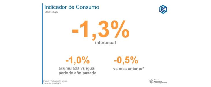 En marzo de 2026, el Indicador de Consumo (IC) de la Cámara Argentina de Comercio y Servicios (CAC) registró un retroceso de 1,3% interanual, acumulando una merma de 1% en el primer trimestre en relación al mismo período de 2025, en el que se habían registrado mejoras.